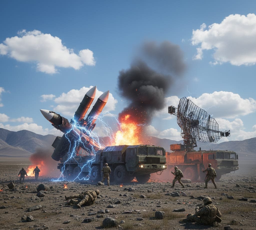 - Satellite communication systems were disrupted to affect battlefield coordination.